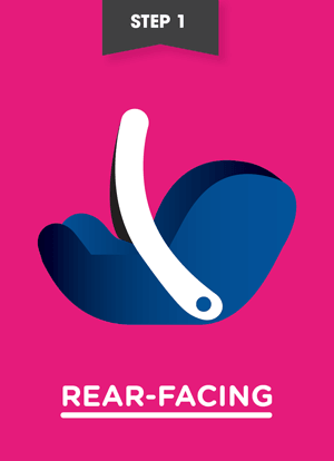 A rear-facing infant carrier or a rear-facing convertible seat should be used from birth until your child reaches the seat’s upper weight or height limit.